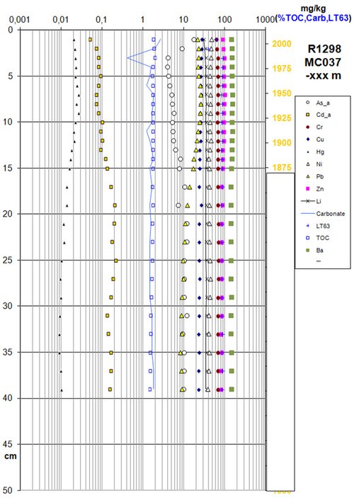 Kjemiske analyser av sedimentkjernene fra stasjon R1298MC037.