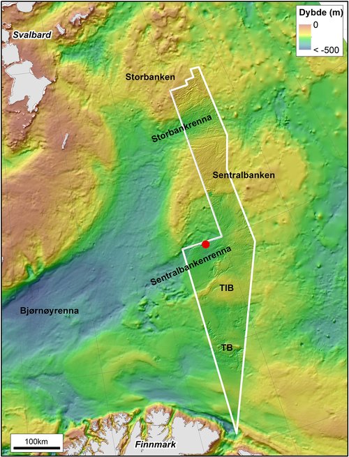 Vi starter undersøkelsene i sørlig del av kartleggingsområdet, like sør for polarfronten. Vannmassen ved bunnen er avgjørende for hvilke arter vi kan finne, og vi vil se hvordan sammensetningen endrer seg når vi beveger oss nordover og inn i kaldere vann.