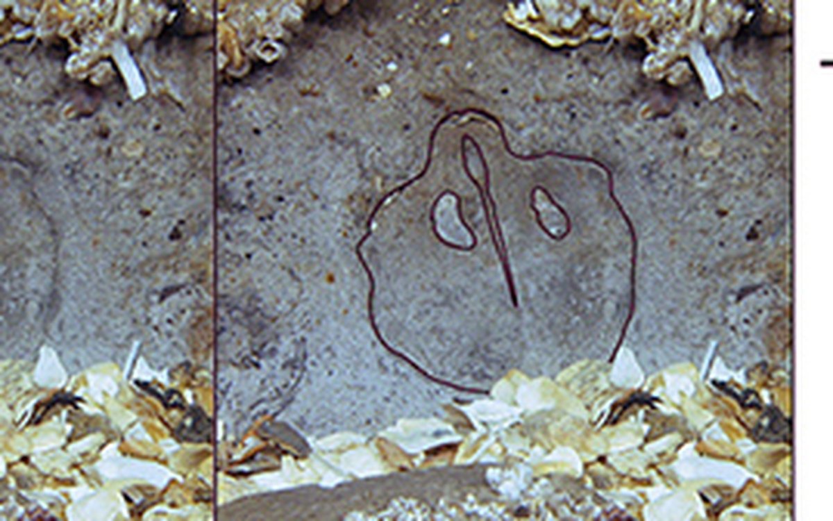 Men noe fanger blikket, noe som for de aller fleste kan se ut som en vanlig gråstein. Den grå steinen stikker så vidt opp fra havbunnen, delvis dekket av rur og omringet av knuste skjell. Men litt er tydelig blottlagt for kameralinsa.