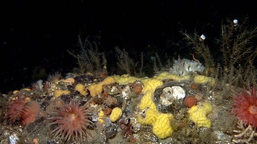 Bunndyrene i området nærmest Bjørnøya danner to ytterpunkter. Én type samfunn som vi ikke kan se, men som absolutt er tilstede under sanddynene, og en annen type som er svært synlig og der man ser fargerike arter som ikke bare lever tett i tett, men også oppå hverandre. Robuste organismer som enkelte store svamparter danner ofte et solid underlag for mindre organismer. Her vinner dyrene høyde i terrenget, noe som kan være gunstig for mattilfanget, eller de kan finne en og annen matbit i hulrom og sprekker mellom de ulike organismene.