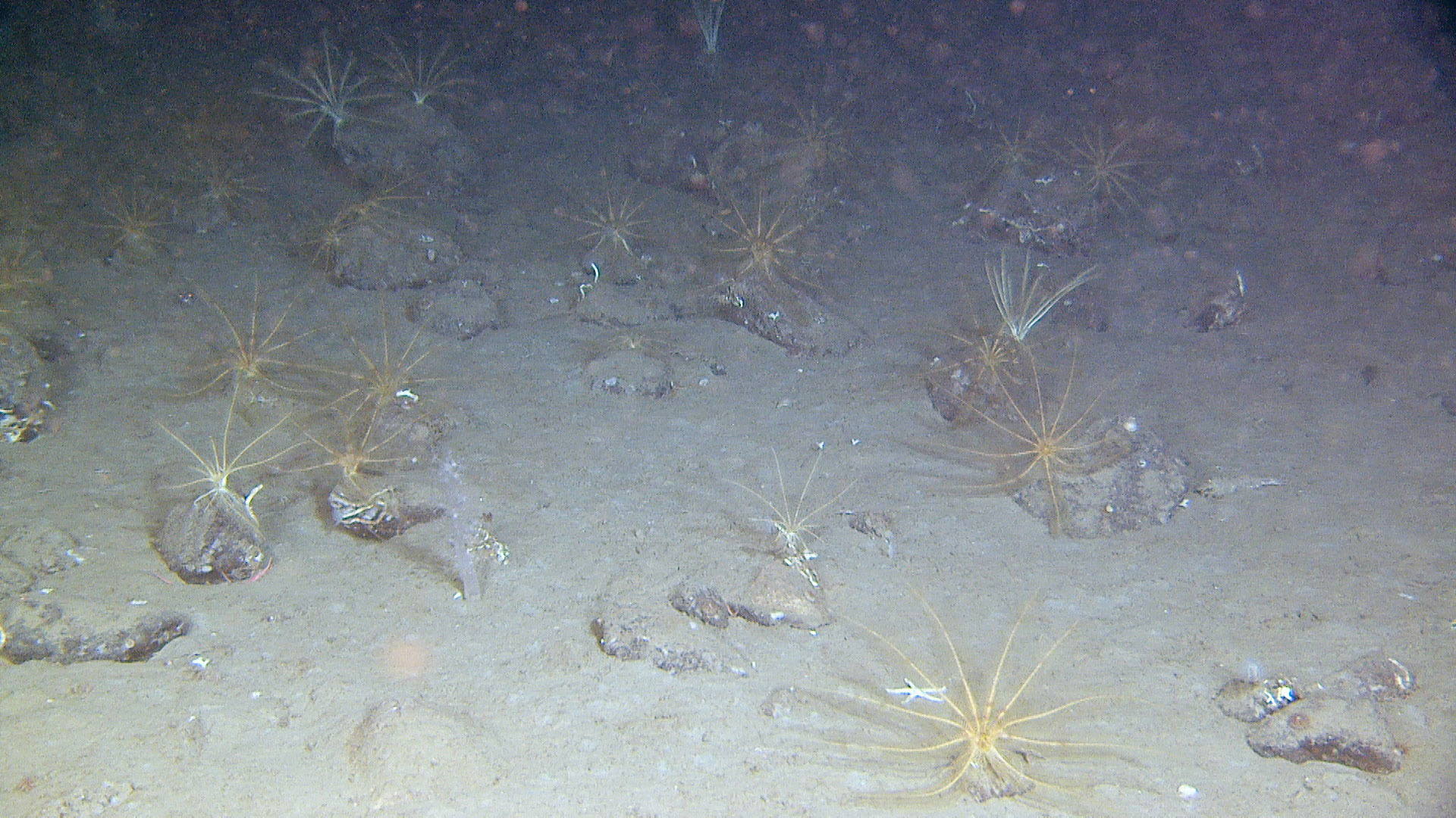 Noe av det mer spesielle vi har observert så langt er bløtbunnskorallskog med grisehalekorall og bambuskorall og tette bestander av muslingen Bathyarca glacialis. I tillegg har Mareano for første gang filmet håkjerring. Den kom helt opp til kamera, langsomt og rolig og med en karakteristisk parasittisk hoppekreps på øyet.