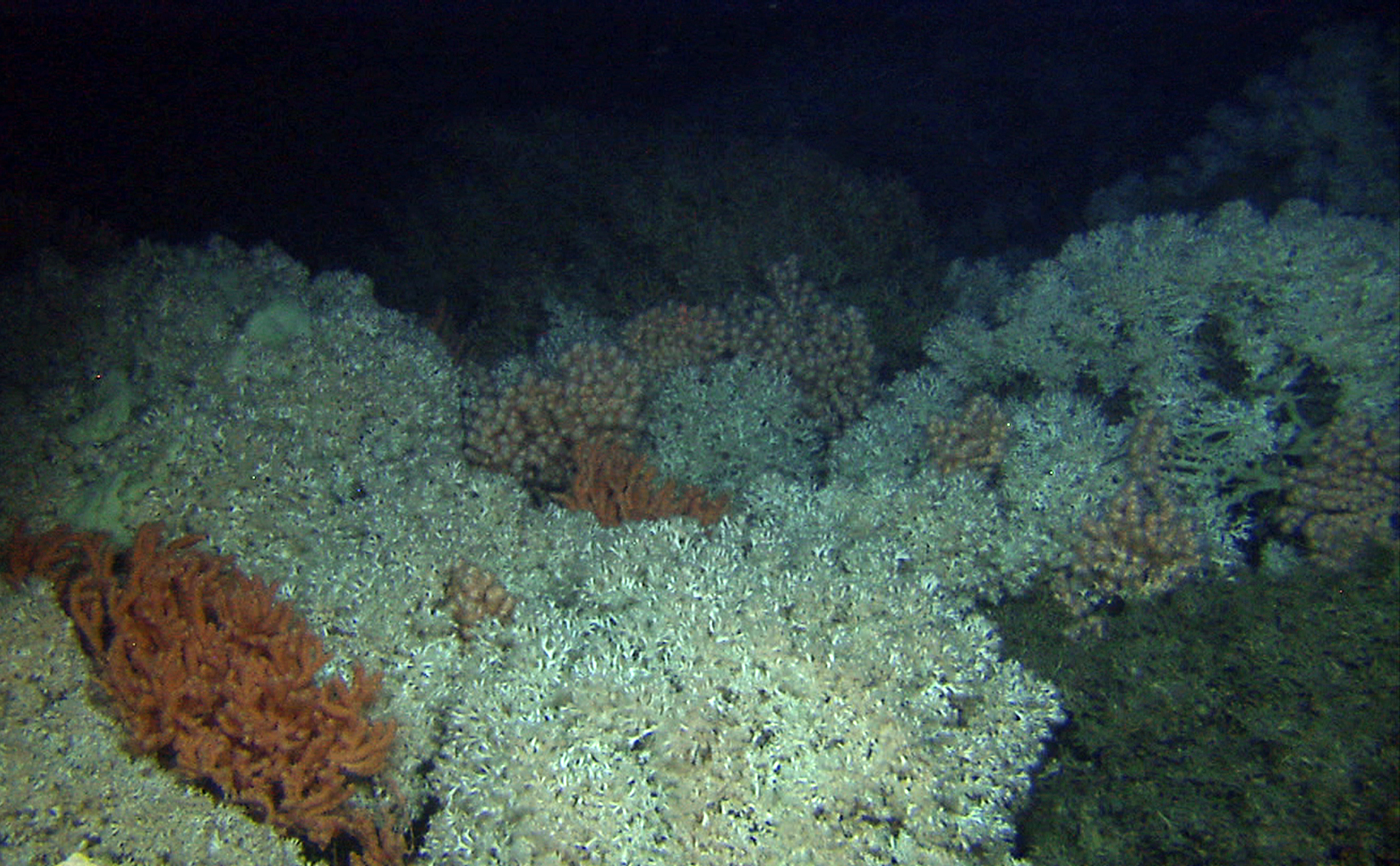 Mangfoldet av dyr som er synlig på video avtar gradvis nedover i dypet. Like nedenfor sokkelkanten finner vi ofte en fargesprakende havbunn. Her vokser korallrev og ”skoger” av sjøtre (Paragorgia) og risengrynkorall (Primnoa) helt i yttergrensen for hvor de kan leve med hensyn til temperatur. Korallrev kan verken vokse eller overleve i vann som er kaldere enn ca. 4 °C. Korallblokker fra revene som står øverst i skråningen kan falle ned i kaldere vann, men der dør de i løpet av kort tid. Dette observerte vi på videoopptakene som vi tok nedenfor Røstrevet.